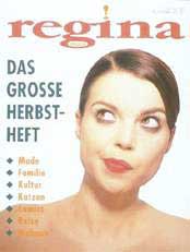 zu situieren. | ![]() regina, No.2, März 1997 Das Große Frühjahrsheft veröffentlicht über den Kunstverein München (Direktor: Dirk Snauwaert) Cover: Photo: Susie Knoll Stylistin: Diana Miller, Photo Team Agentur, München c-right: Regina Möller | |