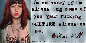 name? Let's start from the beginning, shall we? When I was 17, my dad bought a computer. Yes, I wasn't living at home anymore, but I did visit my parents on a regular basis....mostly to have dinner :-) Anyway, he also had an internet subscription, and back in '97, NO ONE had internet. Seriously. I was all excited about it, and people who now have their own internet companies or who are amazing website designers, told me to shut up about that damn internet back then. Very funy. Anyways... I was into punk and activism, and immediately understood what a great opportunity this was to create an extensive network. So, while surfing around, trying to find info on my fave bands....I stumbled on this amazing thing called riot grrrl. I guess I don't have to explain to all you riot grrrls out there how that felt...it felt to right...so GOOD....you know? But again, it was '97, and the first riot grrrl wave in the states was over and people were already having "riot grrrl is dead/ not dead" discussions. AND I HAD MISSED OUT ON ALL OF IT, GODDAMNIT!!! Still, my gut instinct told me there had to be grrrls out there, not only in the US, but in Europe too. After spending some more time on the internet I ran into some grrrls situated in Holland, which was so exciting!, like Manuela (Eye-Scream) and later on Tanja (Bunnies on Strike) and Suzanne (Dutch grrrl band website). I wanted to create a space for European grrrls to get together and I had been playing around with the term "riot grrrl europe" in my head for some time. Yes, I know, not very original, but at least it would speak to all those grrrls out there. For sure. Not long after, I created the riot grrrl europe mailinglist and oh joy! So many people joined! SO many people mailed me and told me that they had been feeling so alone for such a long time, and then, all of a sudden a place for european riot grrrls had been created! Which after all, was not a hard thing to do. I just logged onto Yahoo groups, and created that list. Around that time I also wanted to make a website aka on-line information center for grrrls in Europe. But I'm an HTML disaster, and the Goddess was so kind to send me Karo, the amazing, brilliant, kick-ass, ever active and creating Karo! Hehe. Together we created the website. This way, we reached many many grrrls, and I shall be so arrogant to say that the RGE mailinglist has been a cradle for many grrrl events taking place around Europe right now. I know that many people met on that list and then moved on. Wonderful, isn't it? But with a website and a mailinglist you don't reach everyone on the European continent. Not everyone is interested in the internet, AND, not everyone has access to an computer. Think of remote areas (cause most city people can get access to everything) in countries like Italy, Poland, the Czech Republic, former Yugoslavia, Spain.....these people have to be reached too! Karo and I decided that a paper zine would be the only way to "spread tha word" and thus, the RGE zine was born... | |